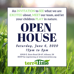 Do you have questions about TerraTime? Feel a little curious or confused? Or maybe just unsure what you will be signing your children up for? We understand. TerraTime is doing something that no one else is doing in our area. Sometimes words are not enough to explain it; you just have to see it for yourself. That's why we want to invite you to join us on Saturday, May 9th, to see what we are excited about, meet our team, and let your children play in nature. This is a FREE event, but registration is required. We are scheduling tours in 30-minute increments. We look forward to meeting you!
